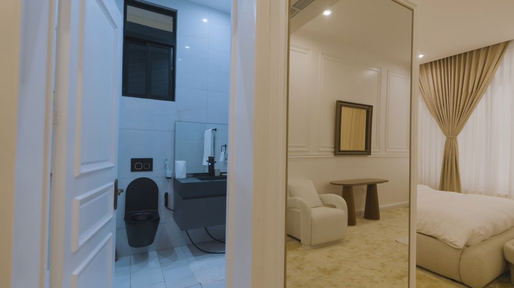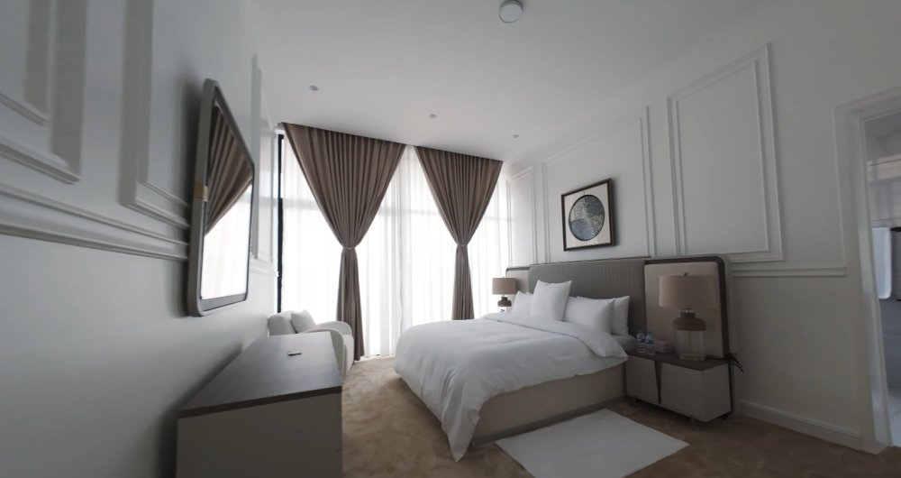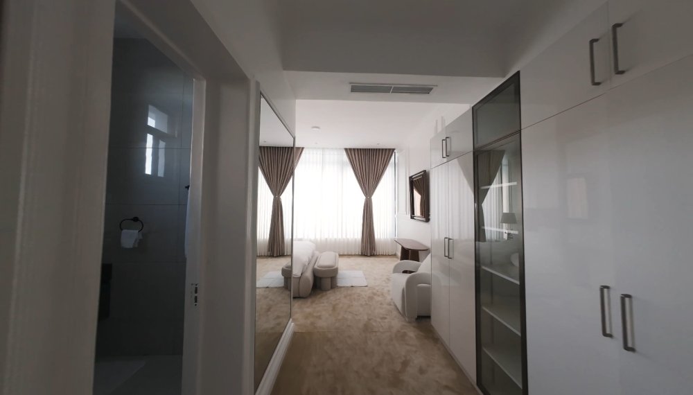 Icyumba cya nyirayo gifite uburyamo bwiza, umwanya uhagije ndetse n’ibikoresho byose bisanzwe biboneka mu byumba by’abanyacyubahiro. Gifitanye isano n’aho abika imyenda, amasakoshi n’inkweto, byose hubatse mu buryo bugezweho kandi bwagutse.