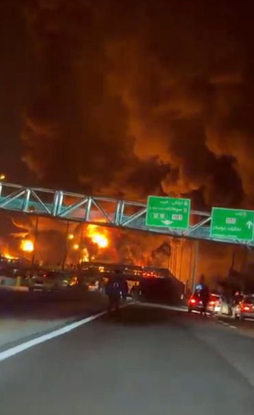 Amakuru aturuka mu gisirikare cya Israel avuga ko cyagabye ibitero ku bubiko bw’ingufu za peteroli bwifashishwaga n’ingabo za Iran. Ibi bitero byateje impanuka zikomeye, aho ububiko bwa peteroli bwa Shahran mu majyaruguru ya Tehran bwafashwe n’inkongi zikomeye zagaragaraga mu kirere nk’ibicu by’umwotsi w’umukara n’umuhondo.