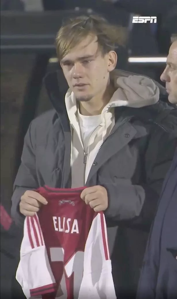 Despite recovering from a hamstring injury, Verkuijl joined Jong Ajax’s team ahead of their match against RKC Waalwijk. Clutching an Ajax shirt bearing Elisa’s name, he struggled to hold back his tears, creating a heart-wrenching scene that moved supporters and players alike.