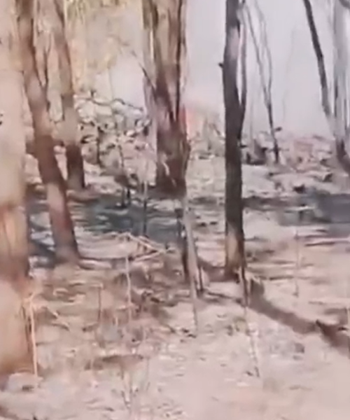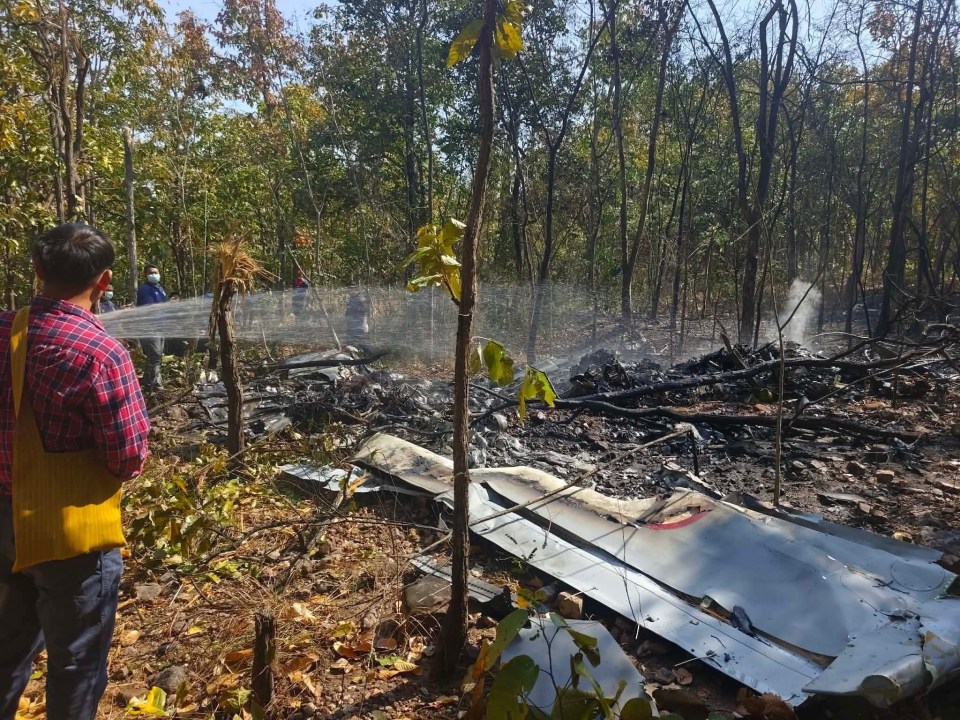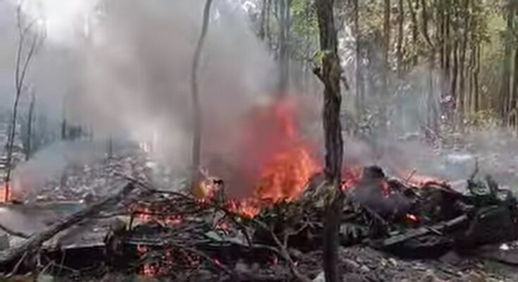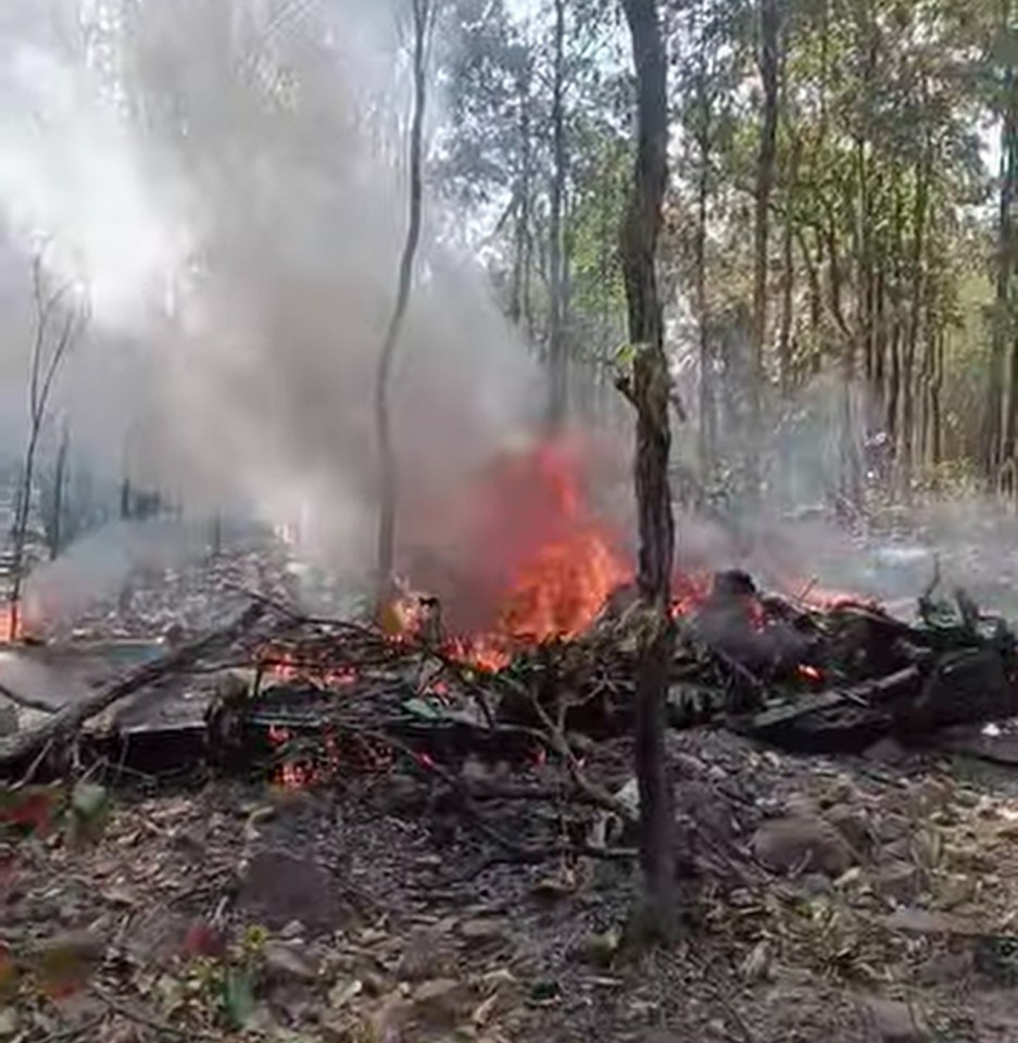 The plane, a Beechcraft AT-6 Wolverine built in the United States, was on a training mission when it went down around 10:30 a.m. local time. Video footage circulating online shows the wreckage still smoldering, with debris scattered across the forest floor and thick gray and white smoke rising above the trees.